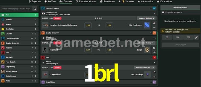 O 1brl oferece uma grande seleção de opções de apostas em e-sports com probabilidades competitivas